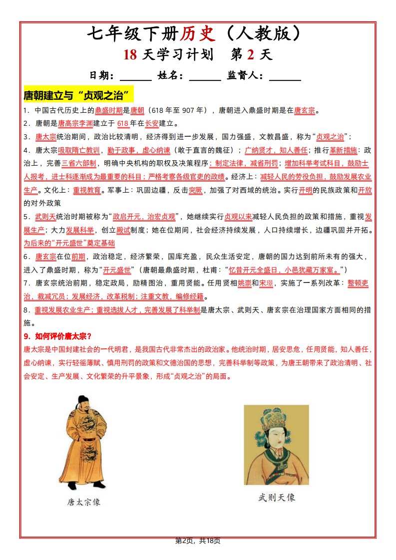 > 02-七年级下册历史(2026背记版)18天学习计划QXLSBB-0068