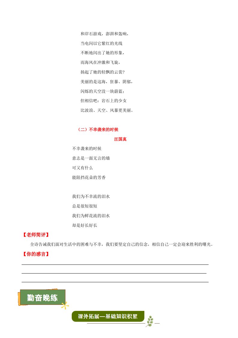 > 第20课《外国诗两首》(学生版)(学生版)(教师版)QXYWBB-0066
