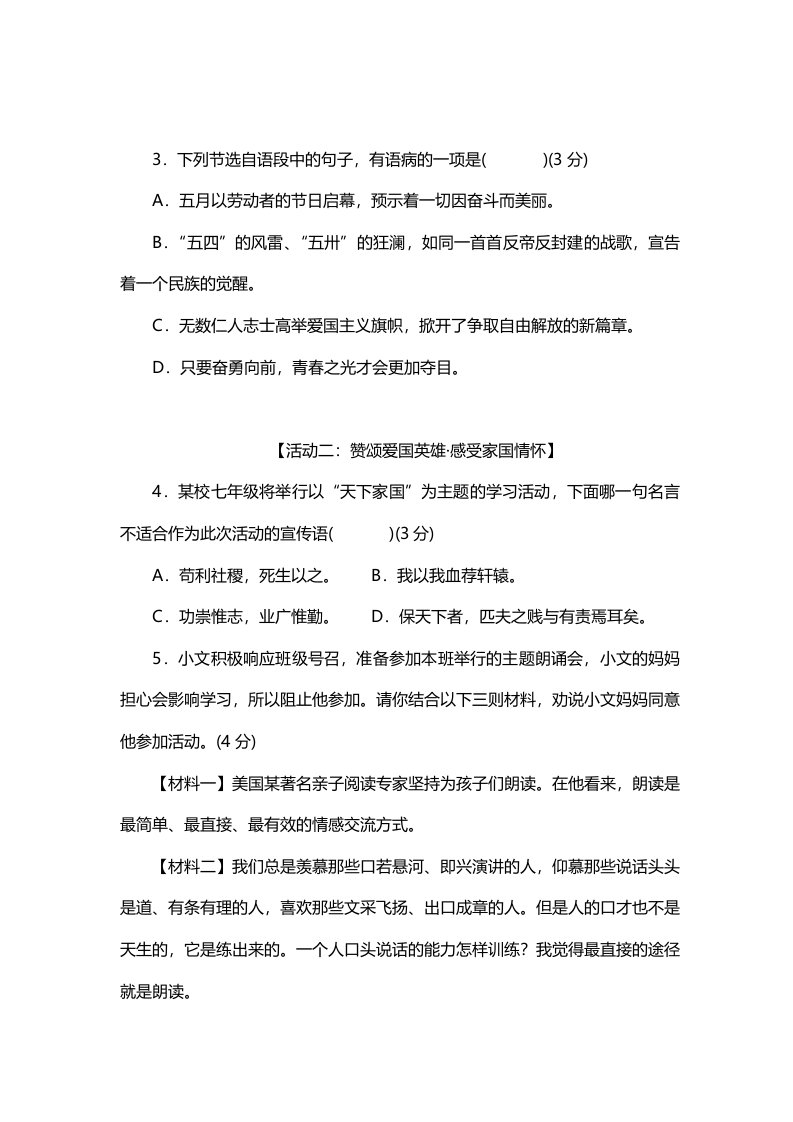 > 期中质量评估 语文统编版七年级下册(含答案)QXYWBB-0232
