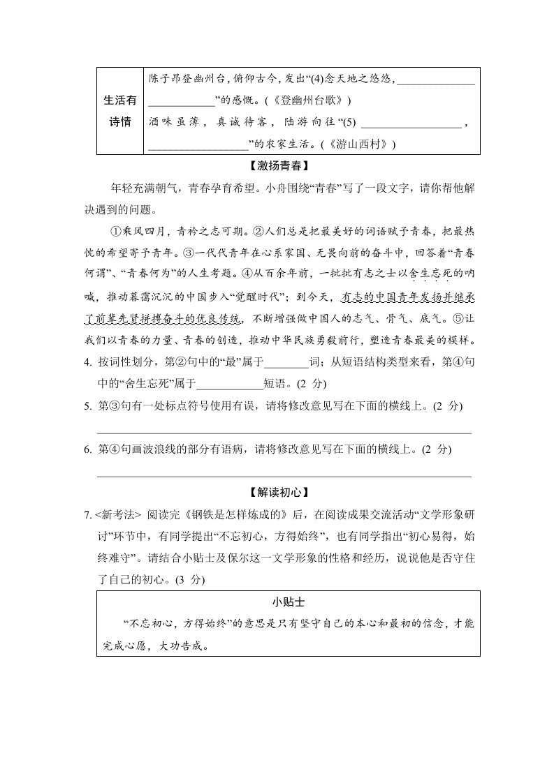 期末综合素质评价 统编版语文七年级下册(含答案)QXYWBB-0255