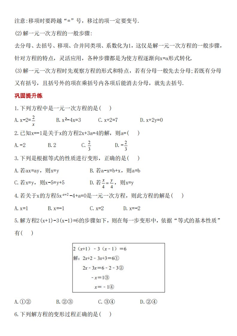 七年级下册数学寒假作业5(一元一次方程及解法)(含答案)QXSXRJ-0239