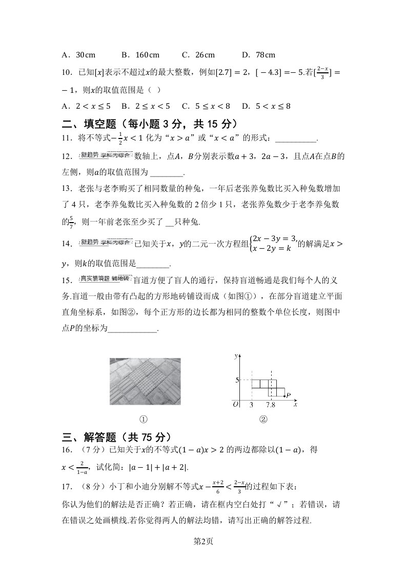 > 七下数学-第十一章 综合素质评价(含答案)QXSXRJ-0013