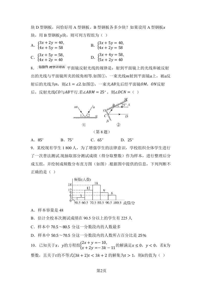 七下数学-期末综合素质评价(含答案)QXSXRJ-0024