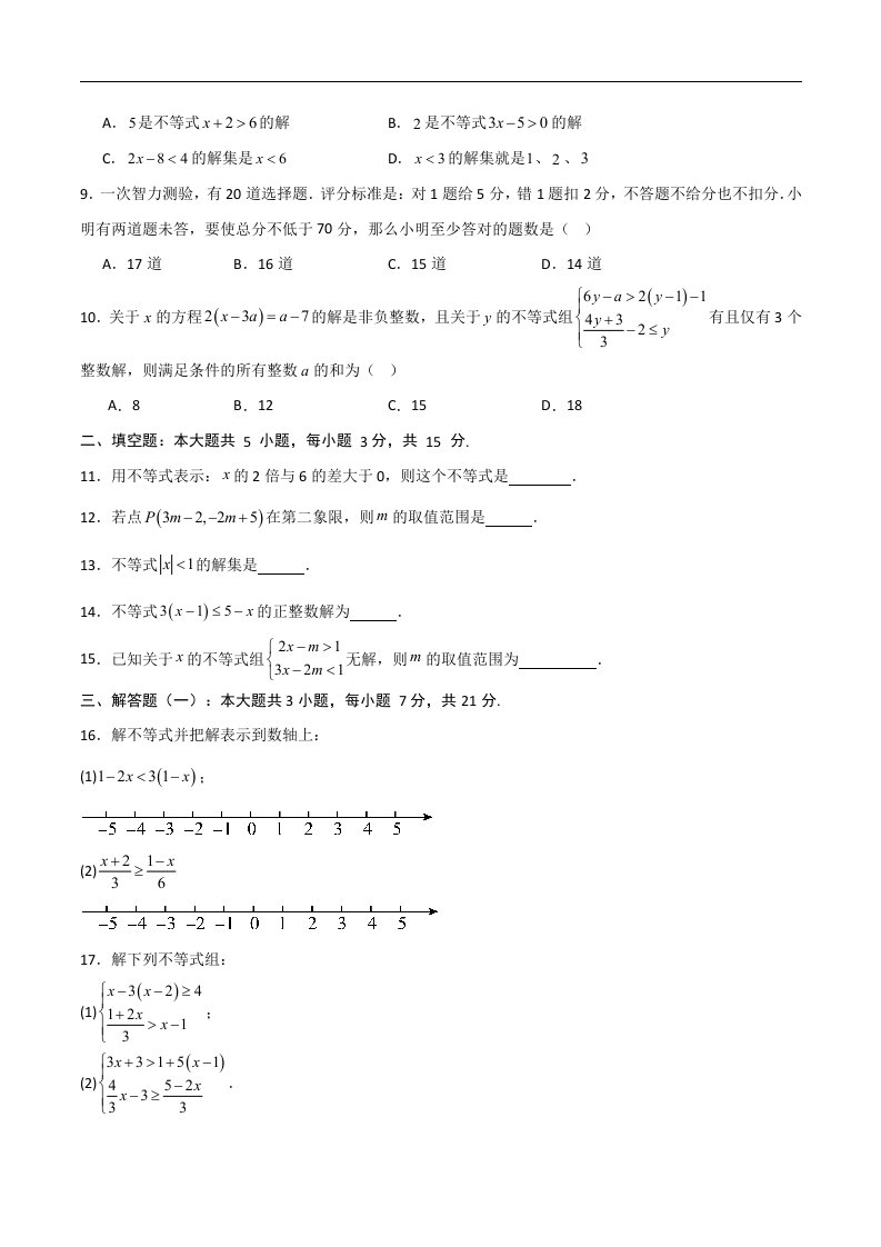 七下数学第十一章 不等式与不等式组(人教版)(含答案)QXSXRJ-0032