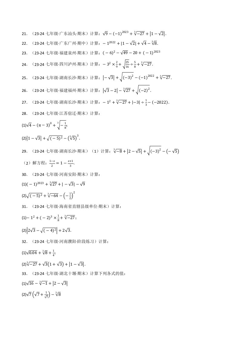 > 七下数学 专题8.4 实数的运算专项训练(50题)(人教版)(含答案)QXSXRJ-0128