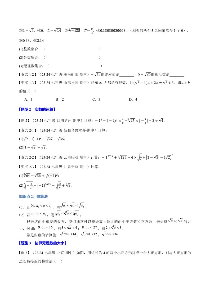 > 七下数学 专题8.3 实数及其简单运算(十大题型)(人教版)(含答案)QXSXRJ-0126