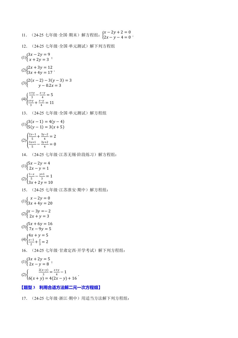 > 七下数学专题10.4 二元一次方程组的解法六大题型分类训练(60题)(人教版)(含答案)QXSXRJ-0072