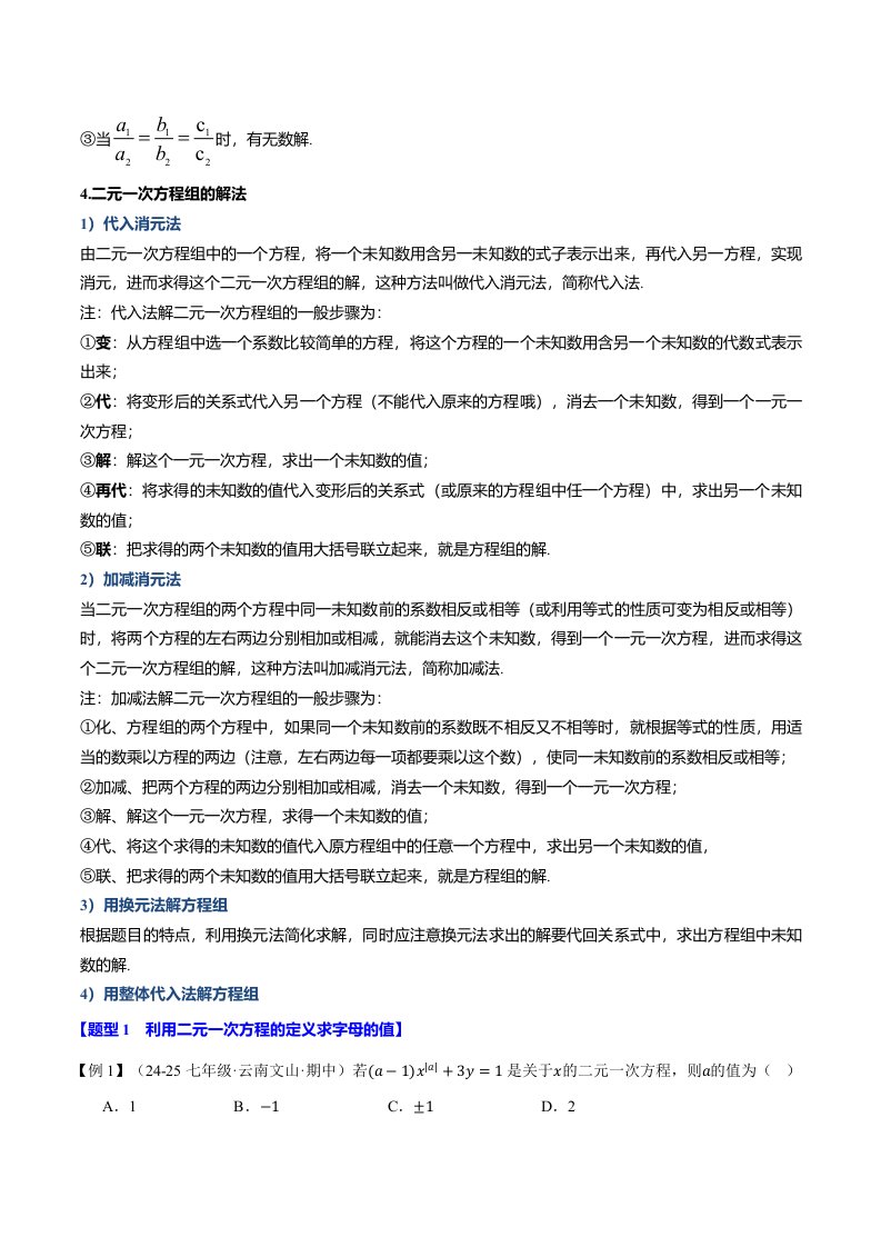 七下数学专题10.7 二元一次方程组全章专项复习(3大考点9大题型)(人教版)(含答案)QXSXRJ-0078