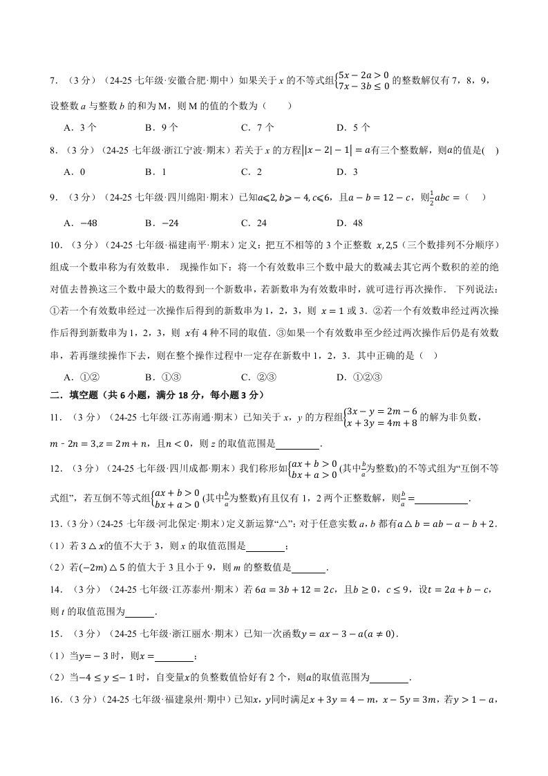 > 七下数学专题11.9 不等式与不等式组压轴题综合测试卷(人教版)(含答案)QXSXRJ-0098