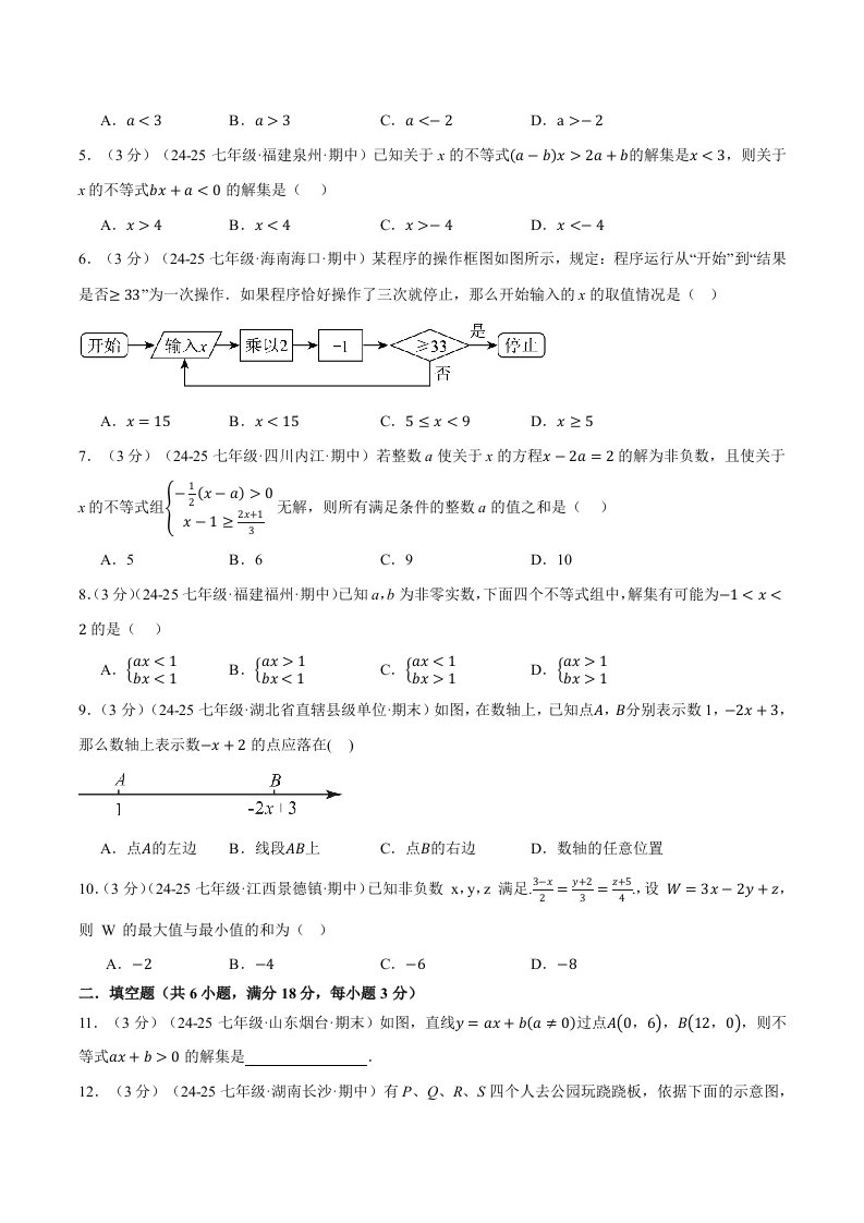 七下数学专题11.7 不等式与不等式组单元提升卷(人教版)(含答案)QXSXRJ-0094