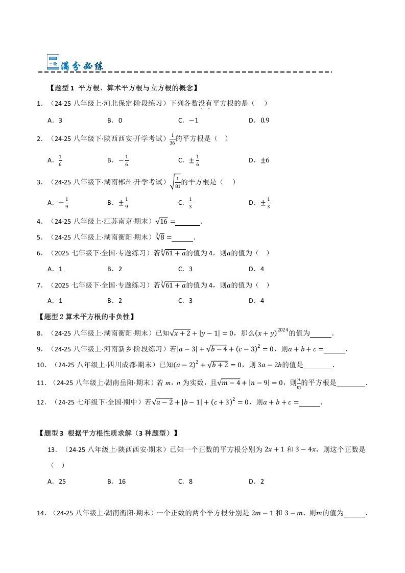 > 七下数学专题04 实数重难点题型归纳(13个考点十六种题型)(含答案)QXSXRJ-0163