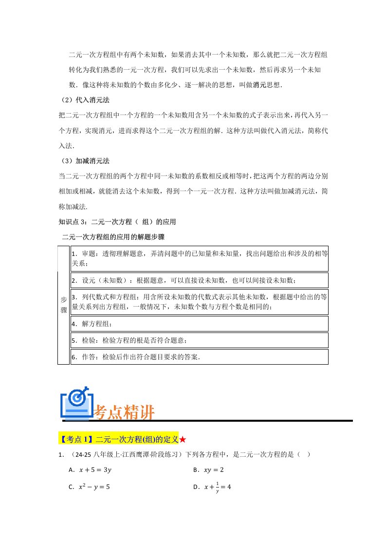 七下数学专题04 二元一次方程组(知识串讲+热考题型+真题训练)(含答案)QXSXRJ-0161