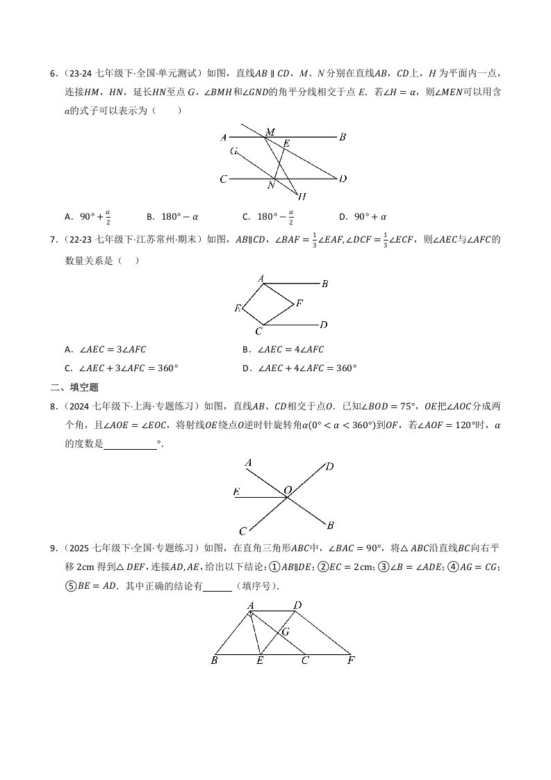 > 七下数学专题02 相交线与平行线压轴汇编(含答案)QXSXRJ-0184