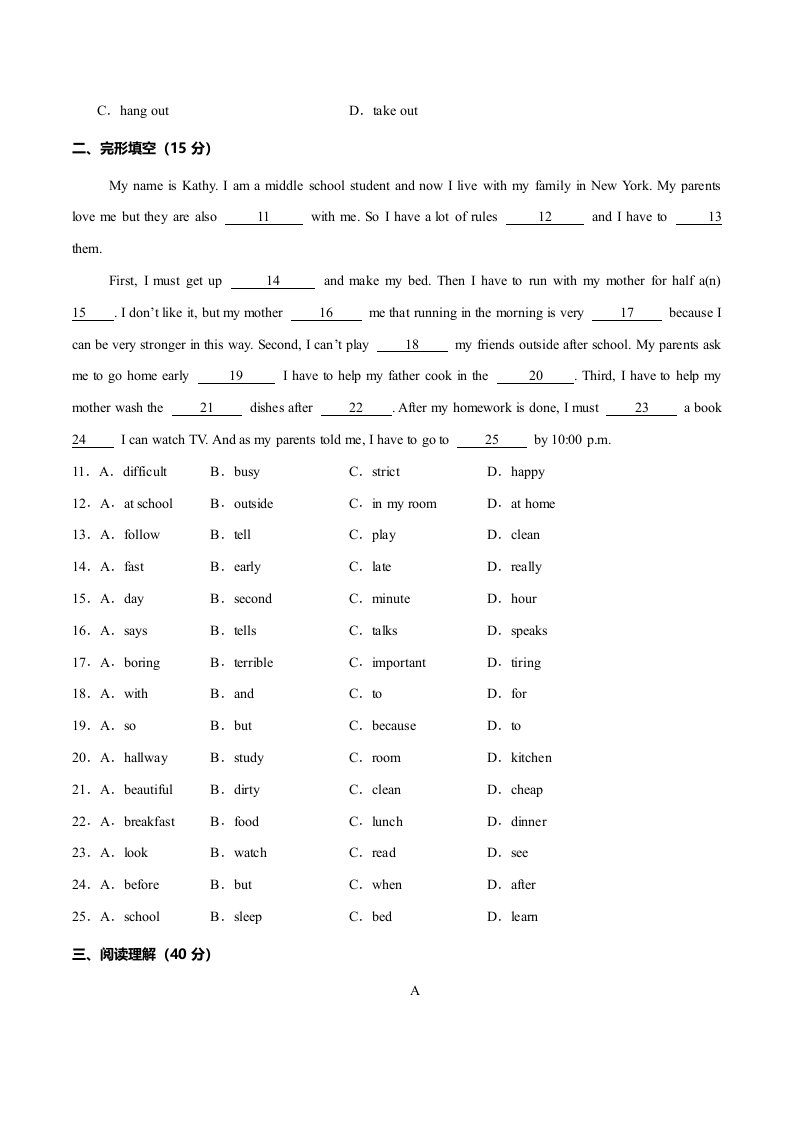 > 七下英语 Unit 2 No Rules , No Order (单元测试)(含答案)QXYYRJ-0191