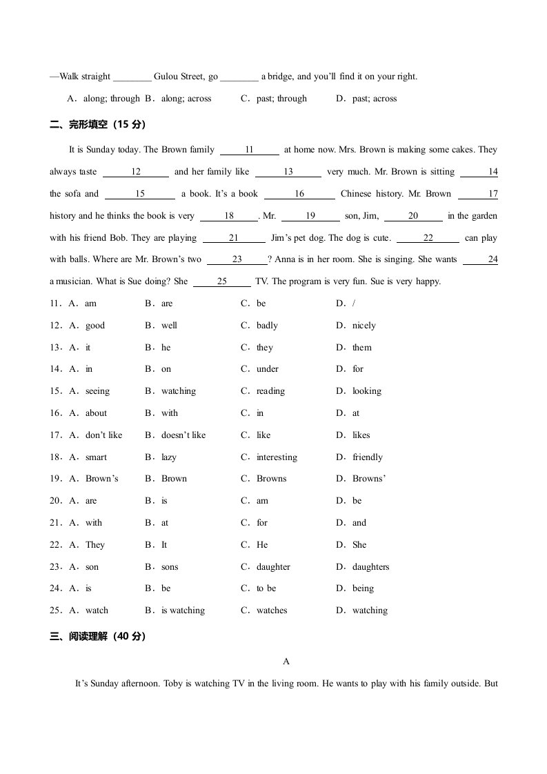 > 七下英语 Unit 5 Here and Now. (单元测试)(含答案)QXYYRJ-0200