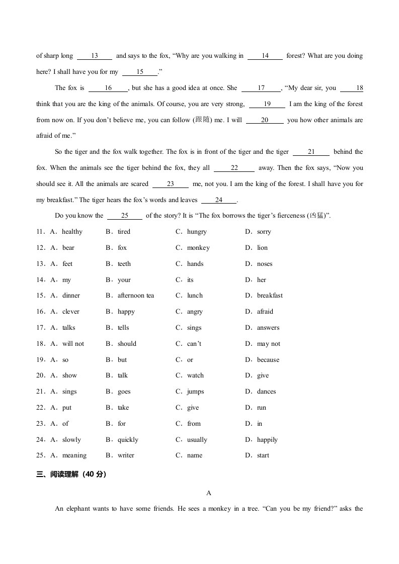 > 七下英语 Unit 8 Once Upon a Time. (单元测试)(含答案)QXYYRJ-0209
