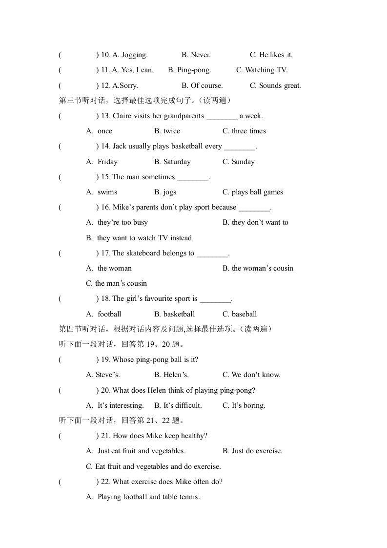 > 七年级下册Unit 3 达标检测试卷 - 含答案QXYYRJ-0222