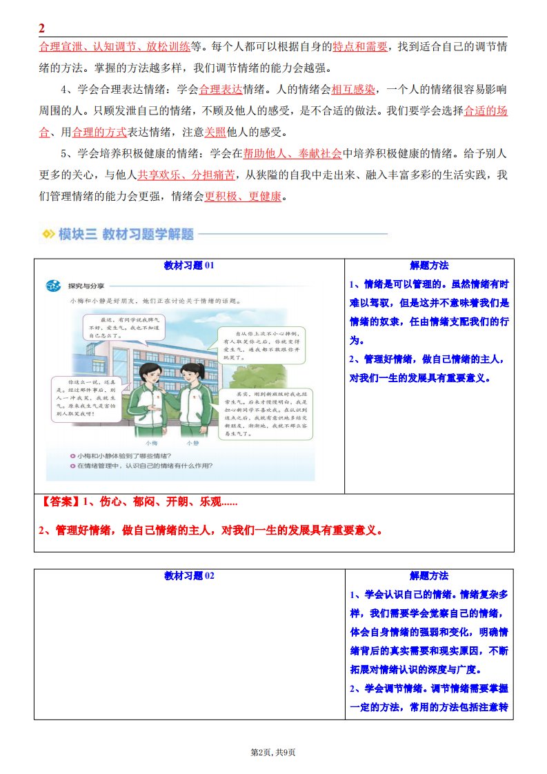 【七下道法】第05讲 学会管理情绪(寒假预习)(原卷版)(含答案)QXDFBB-0151