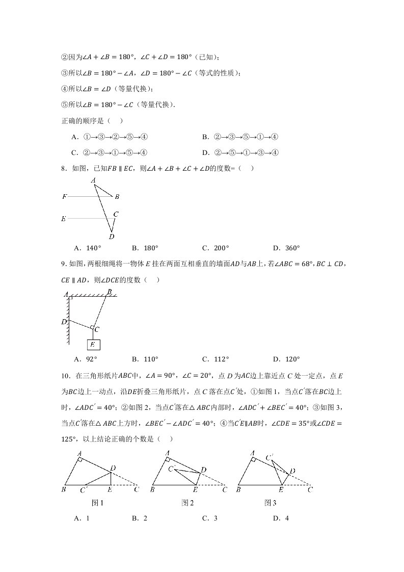 > 七下数学苏科 第12章 定义 命题 证明(含答案)QXSXSK-0063