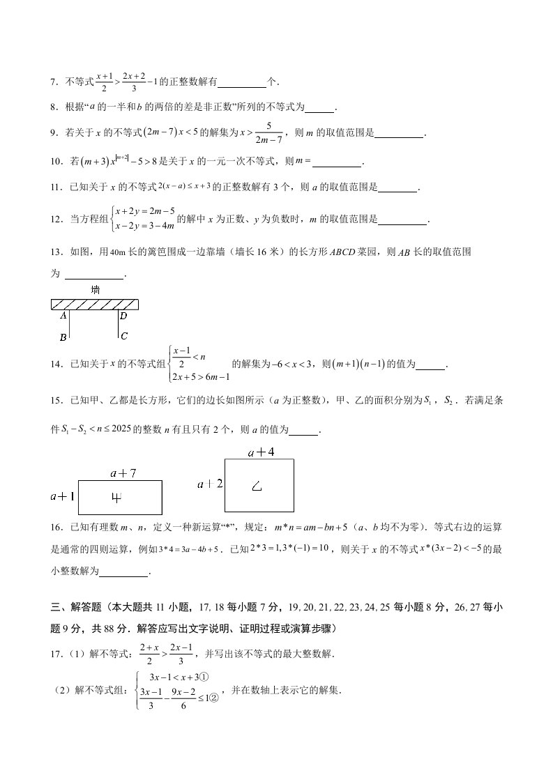 > 七下苏科数学 第11章 一元一次不等式(单元重点综合测试)(含答案)QXSXSK-0074