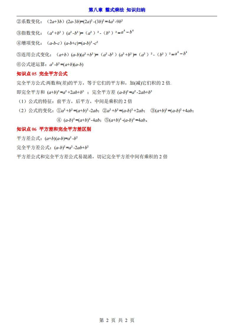 > 七下数学苏科 第08章 整式乘法(知识归纳)QXSXSK-0004