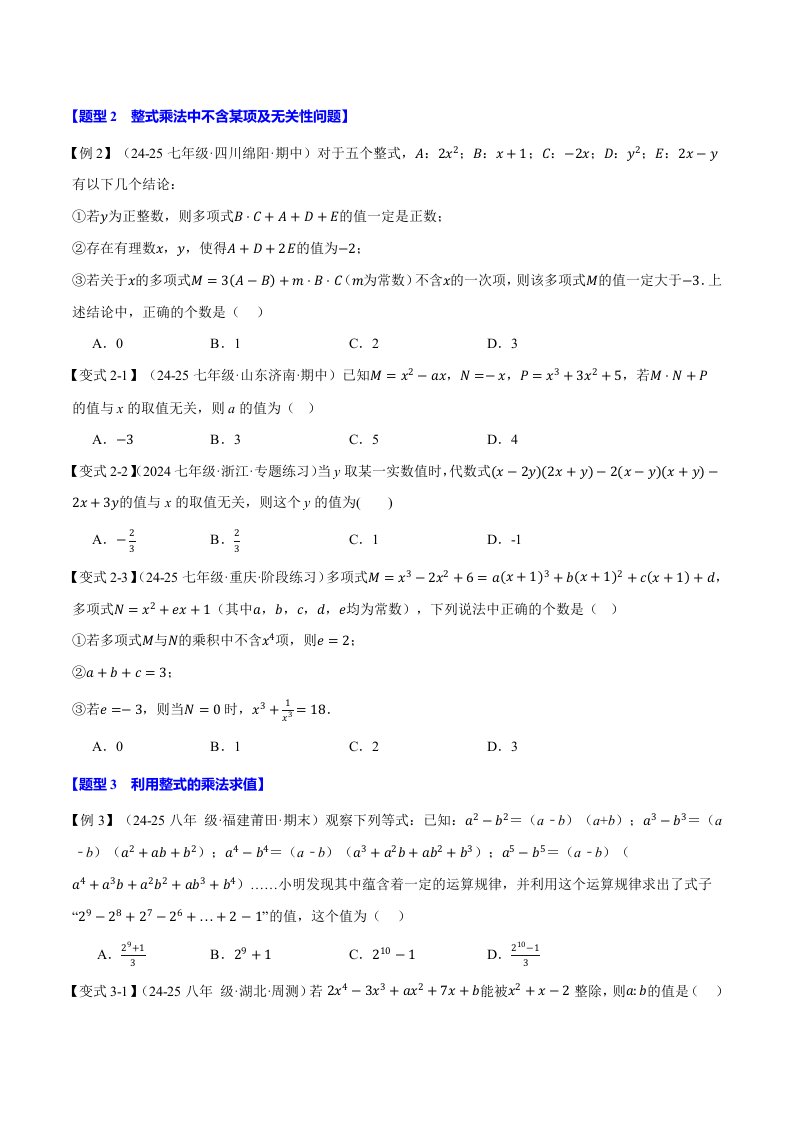 七年级下第一次月考数学压轴题(考查范围:第7~8章)(举一反三)(苏科版)(含答案)QXSXSK-0234