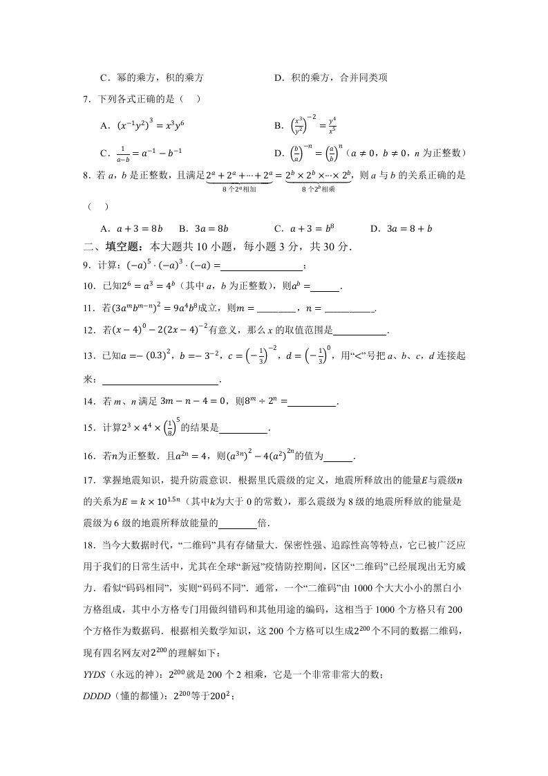 七下数学苏科 第7章 幂的运算章末综合检测卷(含答案)QXSXSK-0065
