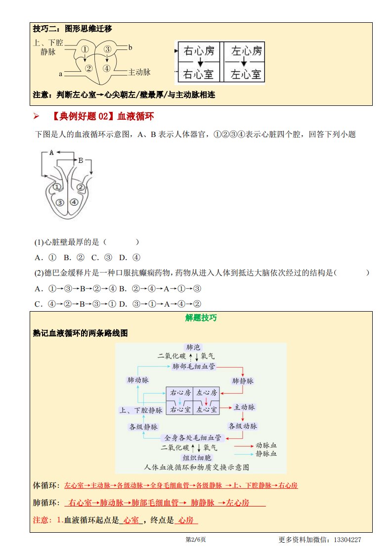 【七下人教生物】压轴题07 心脏及血液循环(含答案)QXSWRJ-0103