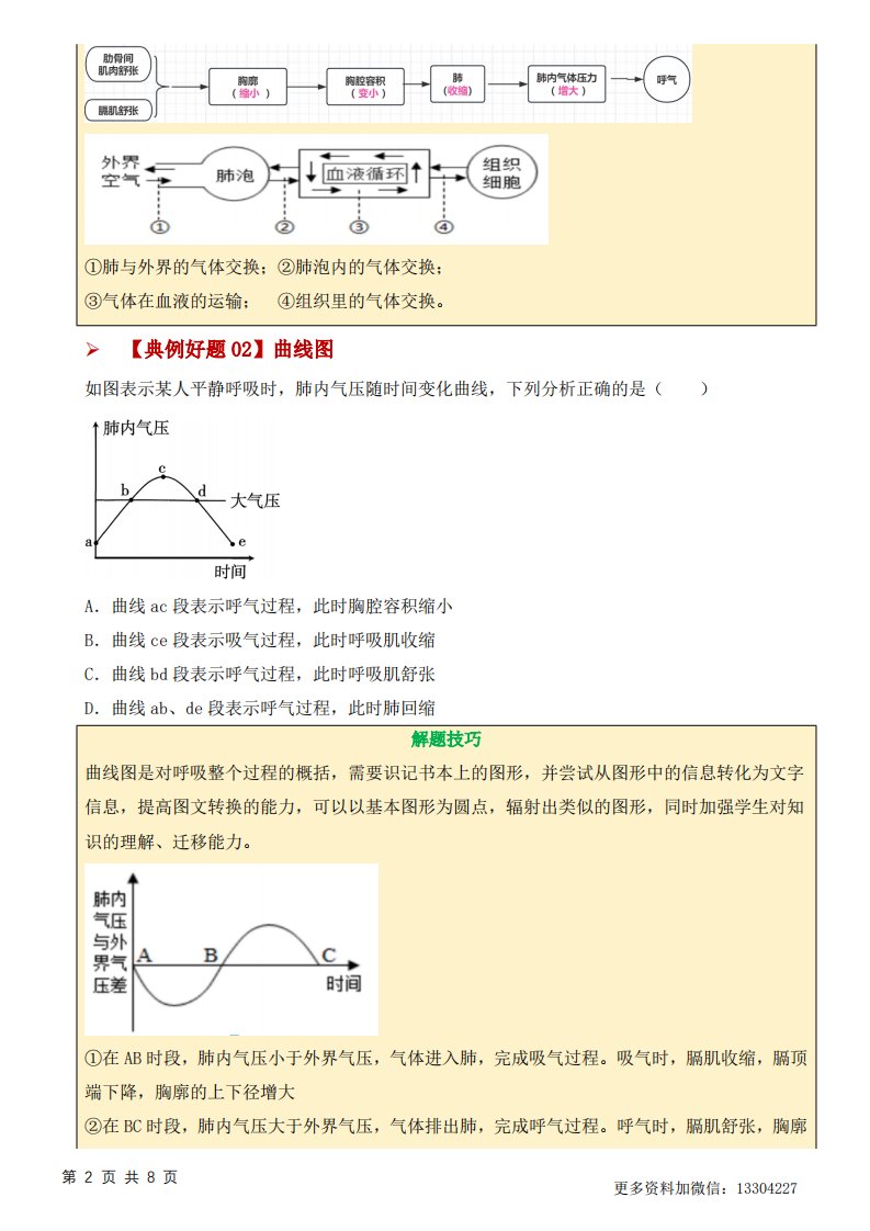 【七下人教生物】压轴题05 人体的呼吸(含答案)QXSWRJ-0100