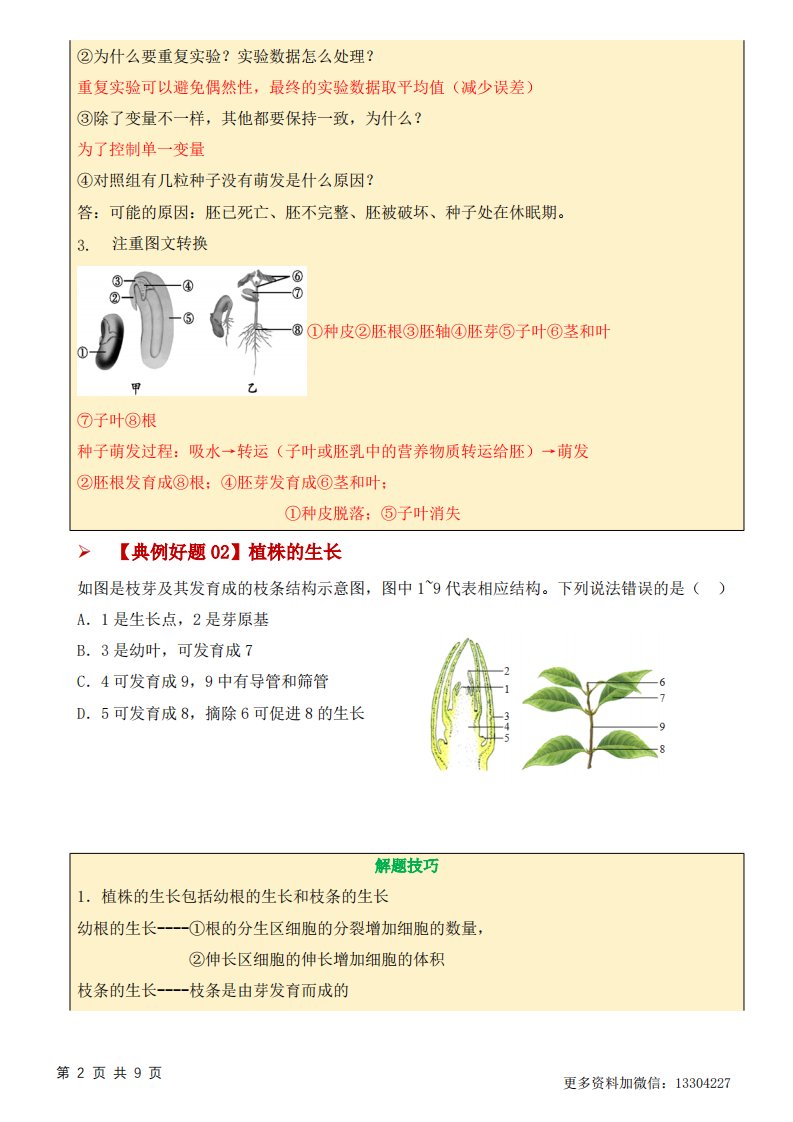 > 【七下人教生物】压轴题01 被子植物的一生(含答案)QXSWRJ-0093