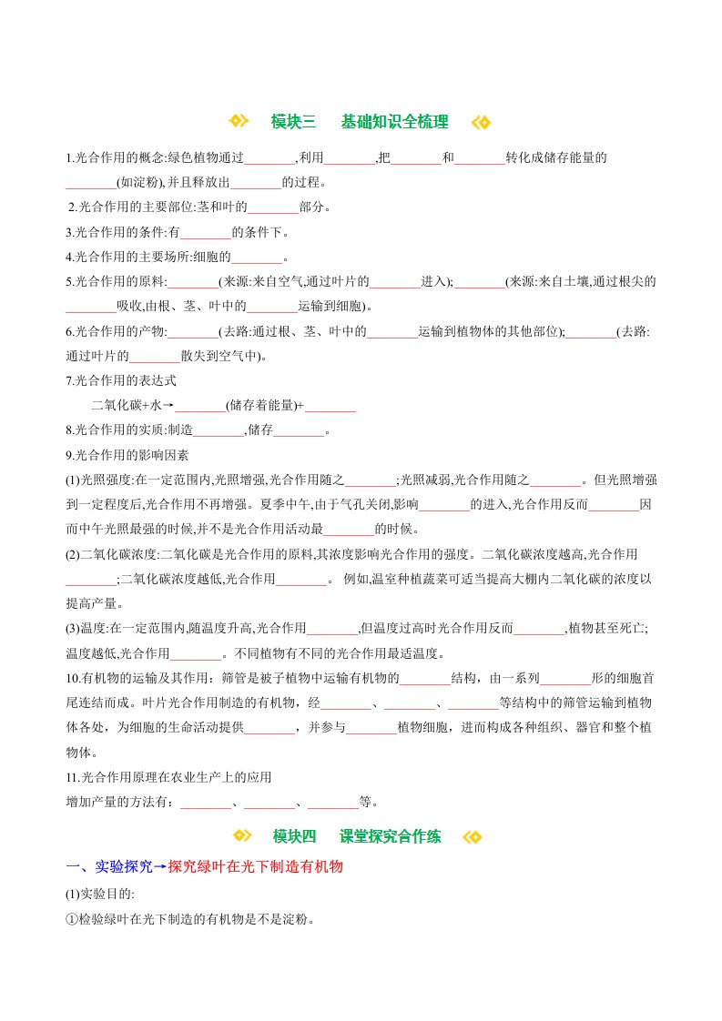七下生物 3.2.2 光合作用(含答案)QXSWRJ-0053
