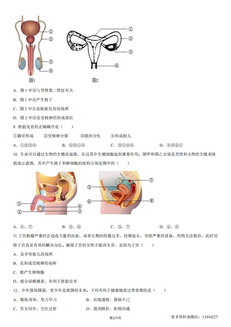 > 【七下人教生物】第四单元第一章 人的生殖和发育【单元卷·测试卷】(含答案)QXSWRJ-0086