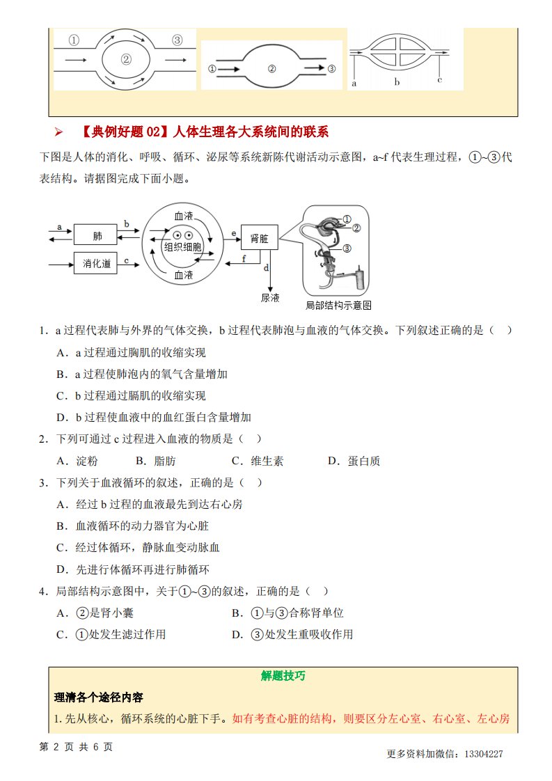 【七下人教生物】压轴题09 人体生理综合(含答案)QXSWRJ-0107