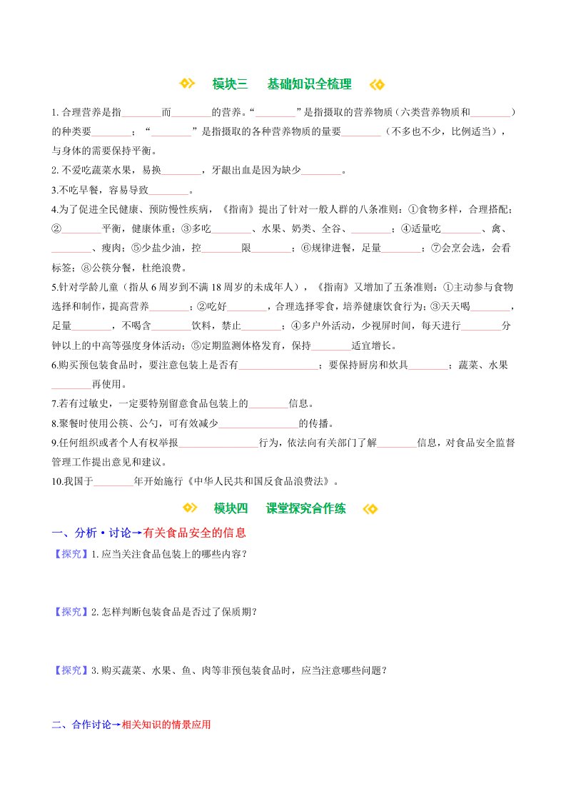 七下生物 4.2.3 合理营养与食品安全(含答案)QXSWRJ-0067