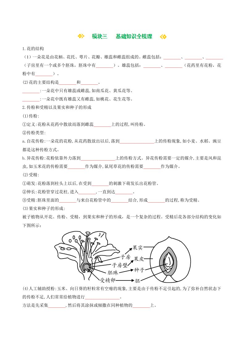 七下生物 3.1.3 开花和结果(含答案)QXSWRJ-0049