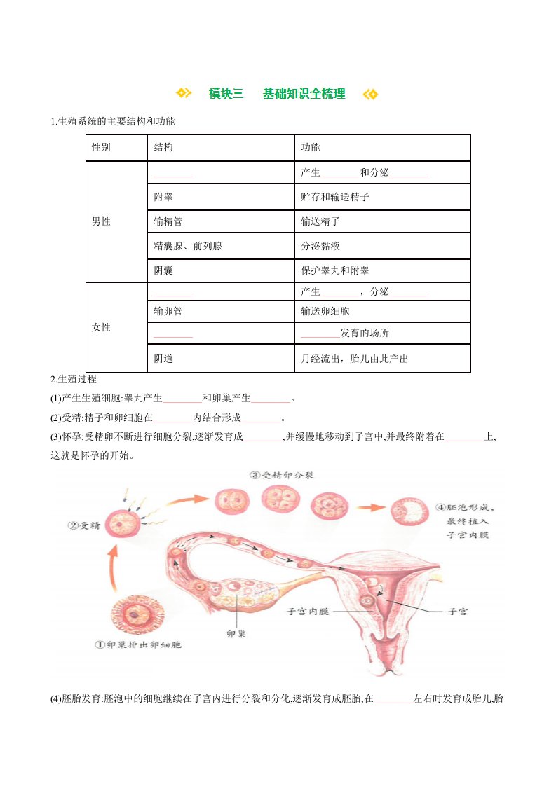 > 七下生物 4.1.1 人的生殖(含答案)QXSWRJ-0059