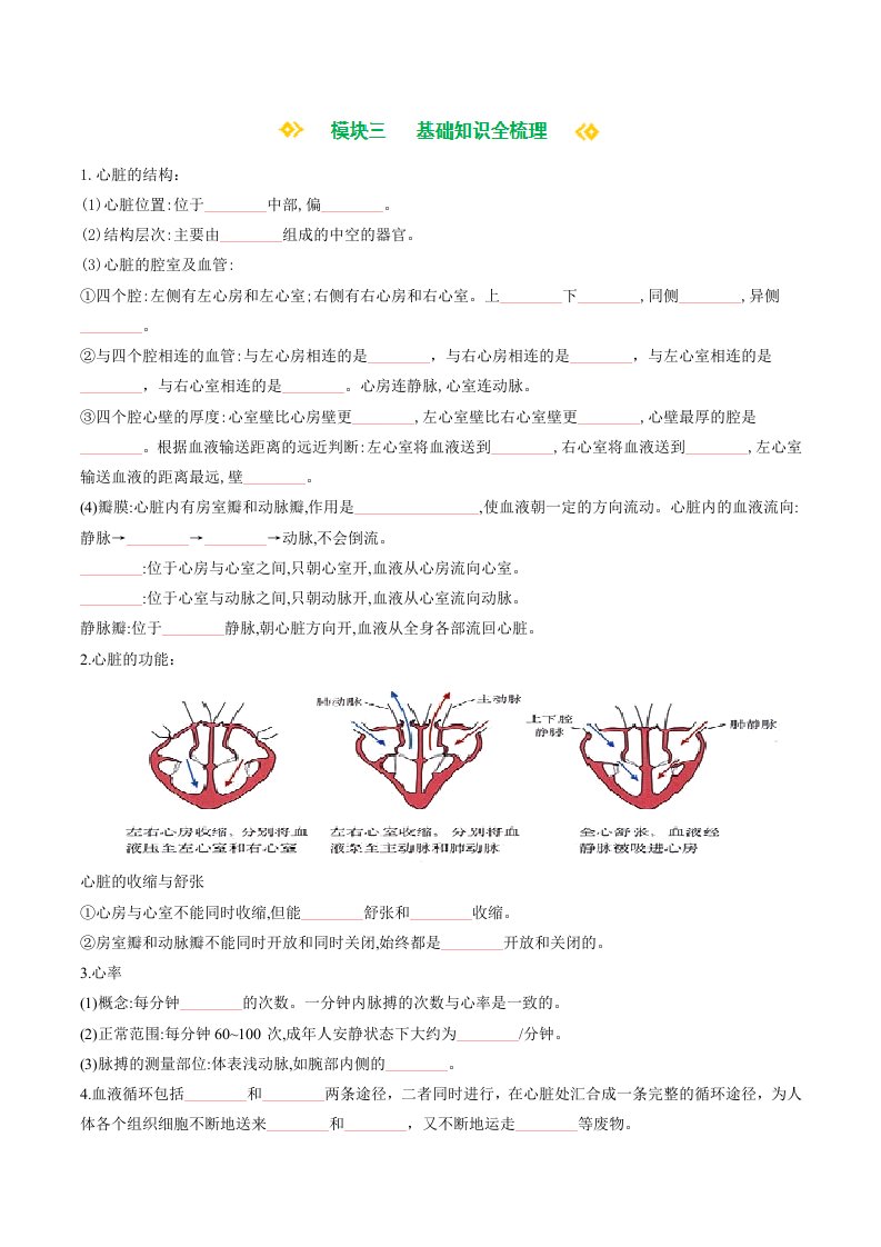 > 七下生物 4.4.3 输送血液的泵—心脏(含答案)QXSWRJ-0077