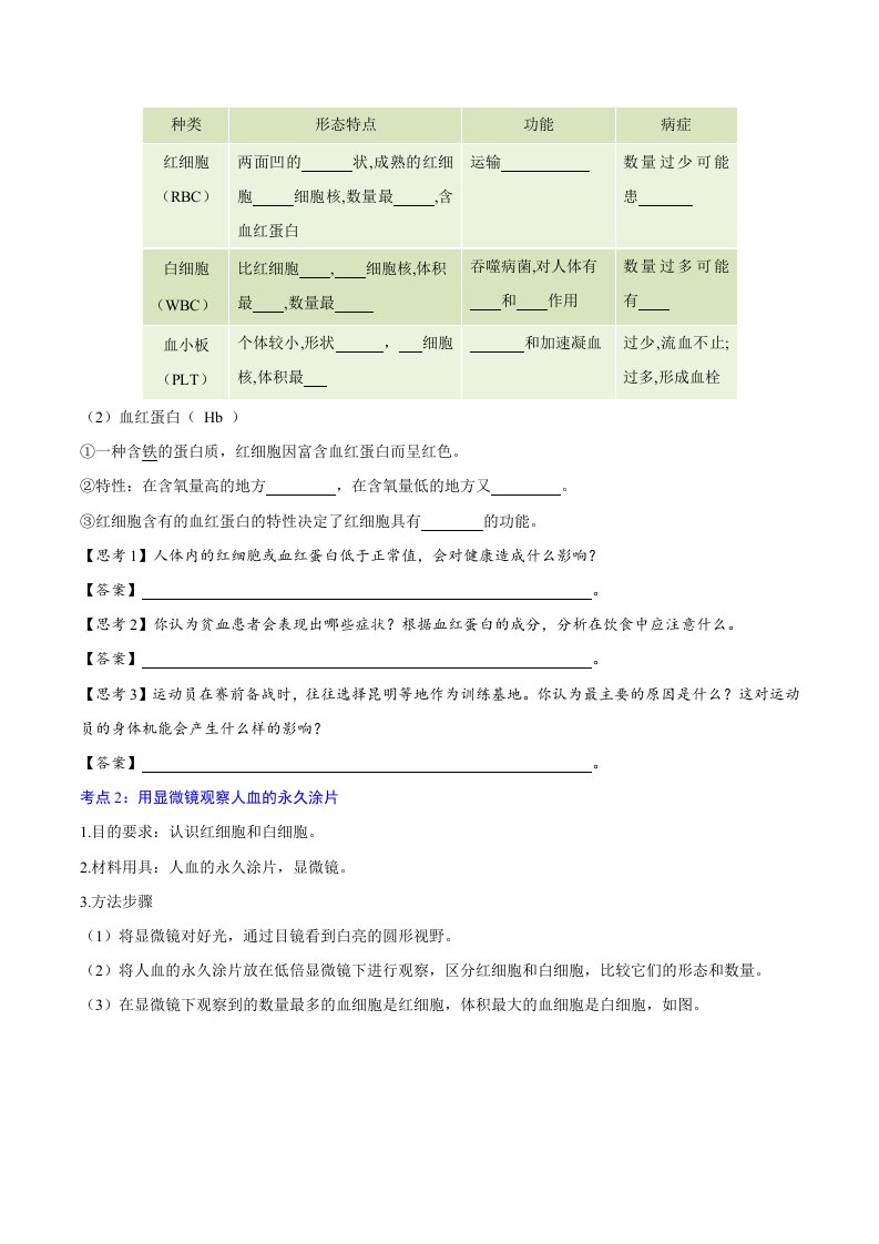 七下生物 第四章 人体内物质的运输 (含答案)QXSWRJ-0038