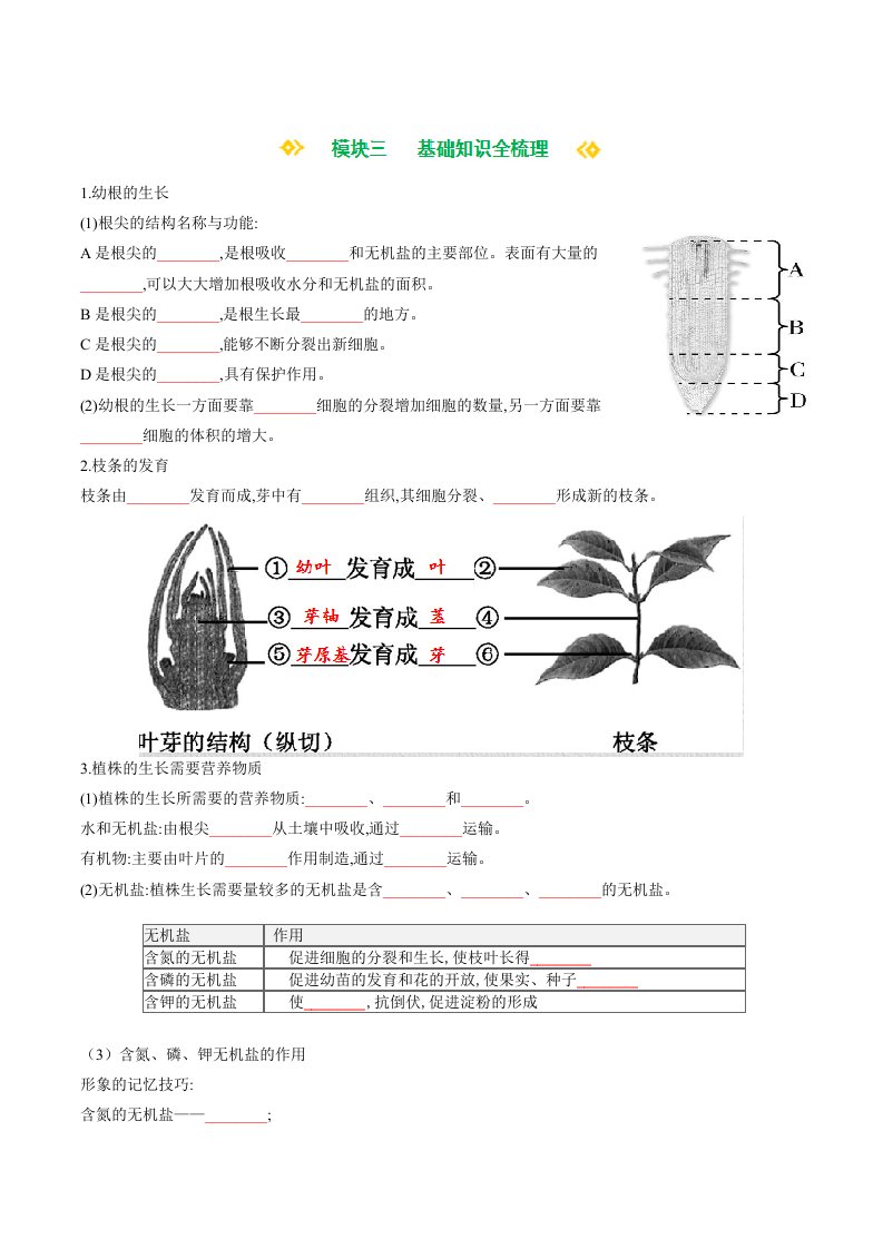 七下生物 3.1.2 植株的生长(含答案)QXSWRJ-0047