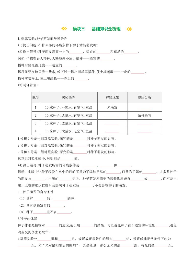 七下生物 3.1.1 种子的萌发(含答案)QXSWRJ-0045