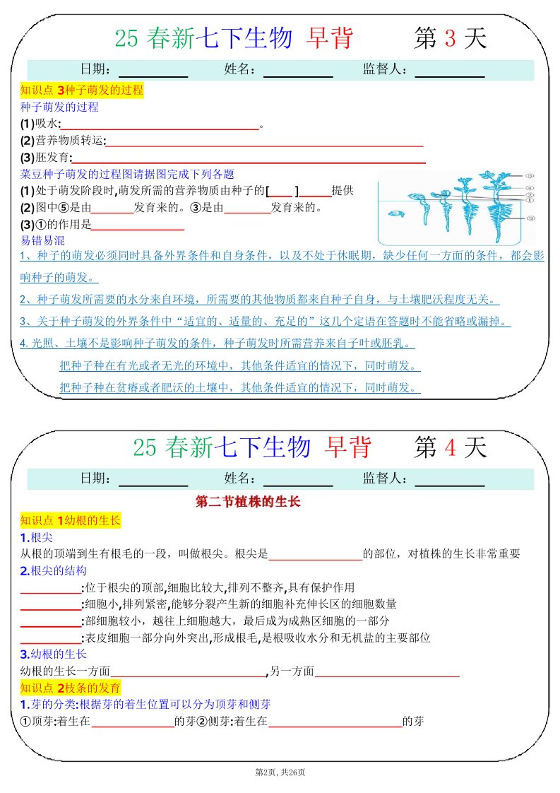 > 26春七下人教版生物默写小纸条--(含答案)QXSWRJ-0004