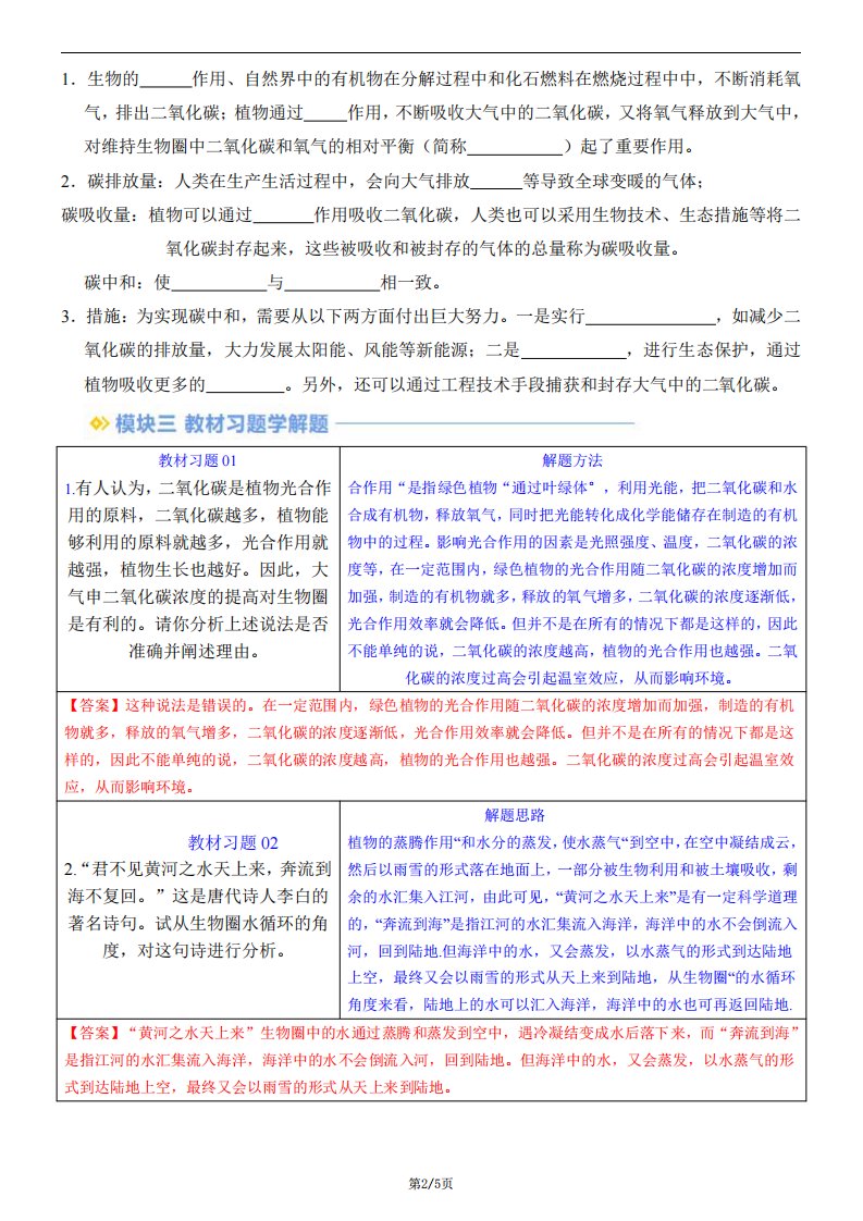 【七下人教生物】3.2.4 植物在自然界中的作用(含答案)QXSWRJ-0146