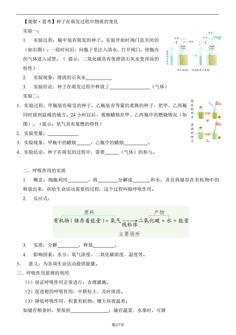 【七下人教生物】3.2.3 呼吸作用(含答案)QXSWRJ-0144