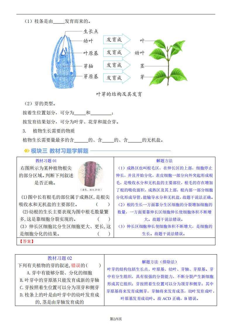 【七下人教生物】3.1.2 植株的生长(含答案)QXSWRJ-0139