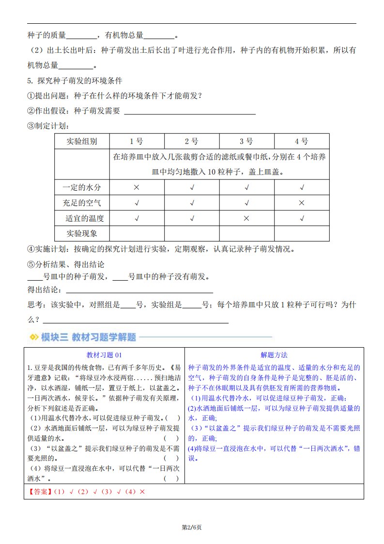 【七下人教生物】3.1.1 种子的萌发(含答案)QXSWRJ-0137