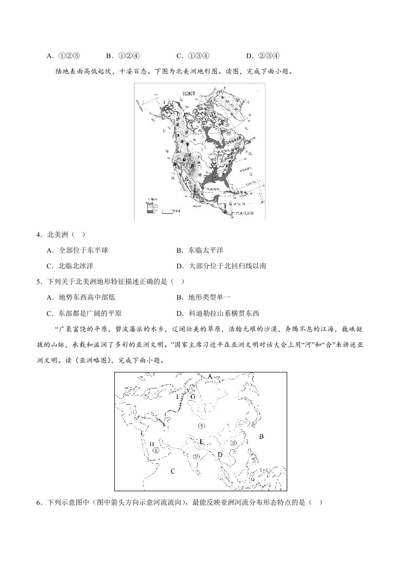 七年级下地理月考卷01【测试范围:人教版2024第七~八章第二节】(含答案)QXDLRJ-0089