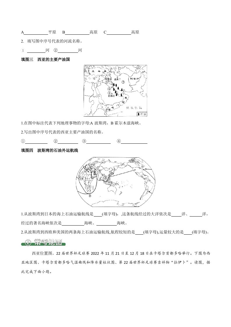 七下地理 9.1西亚(填图速记)-(人教版)(含答案)QXDLRJ-0079