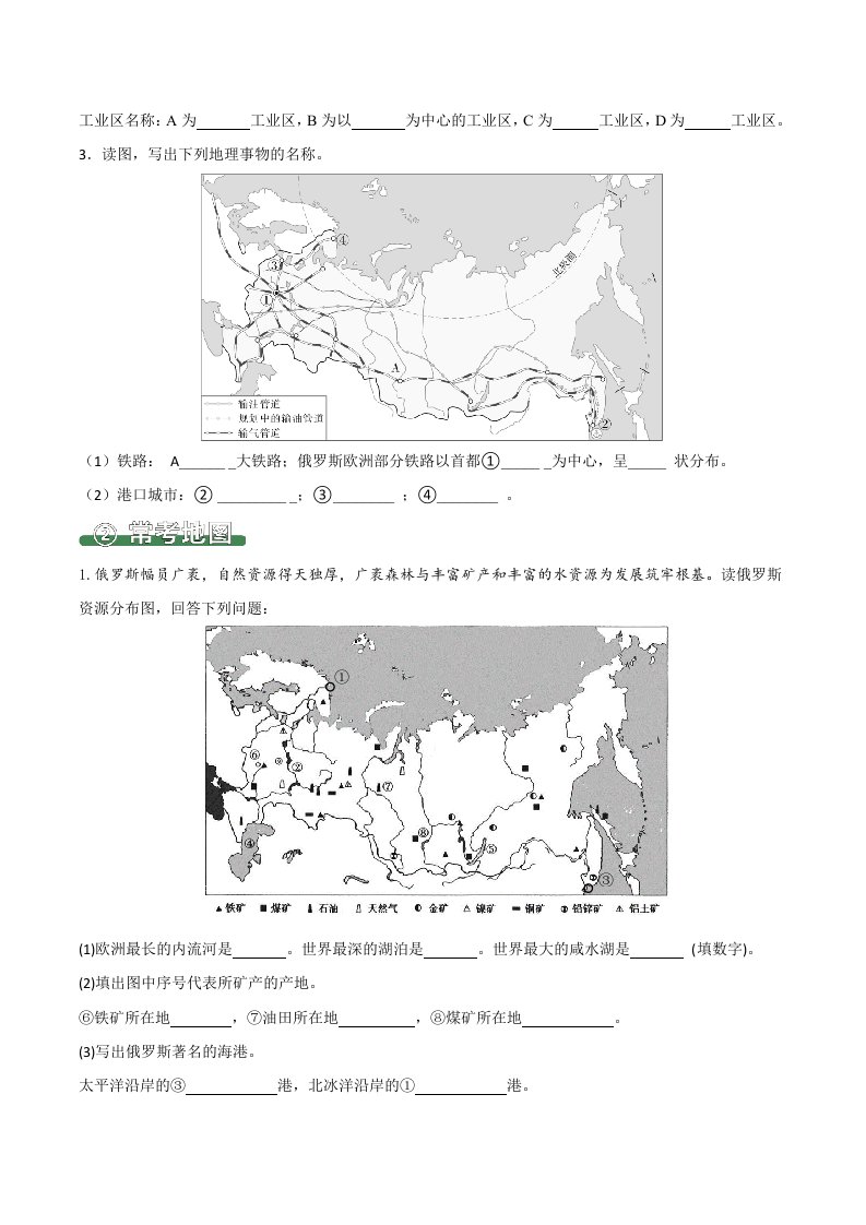 七下地理 8.4俄罗斯(填图速记)-(人教版)(含答案)QXDLRJ-0077