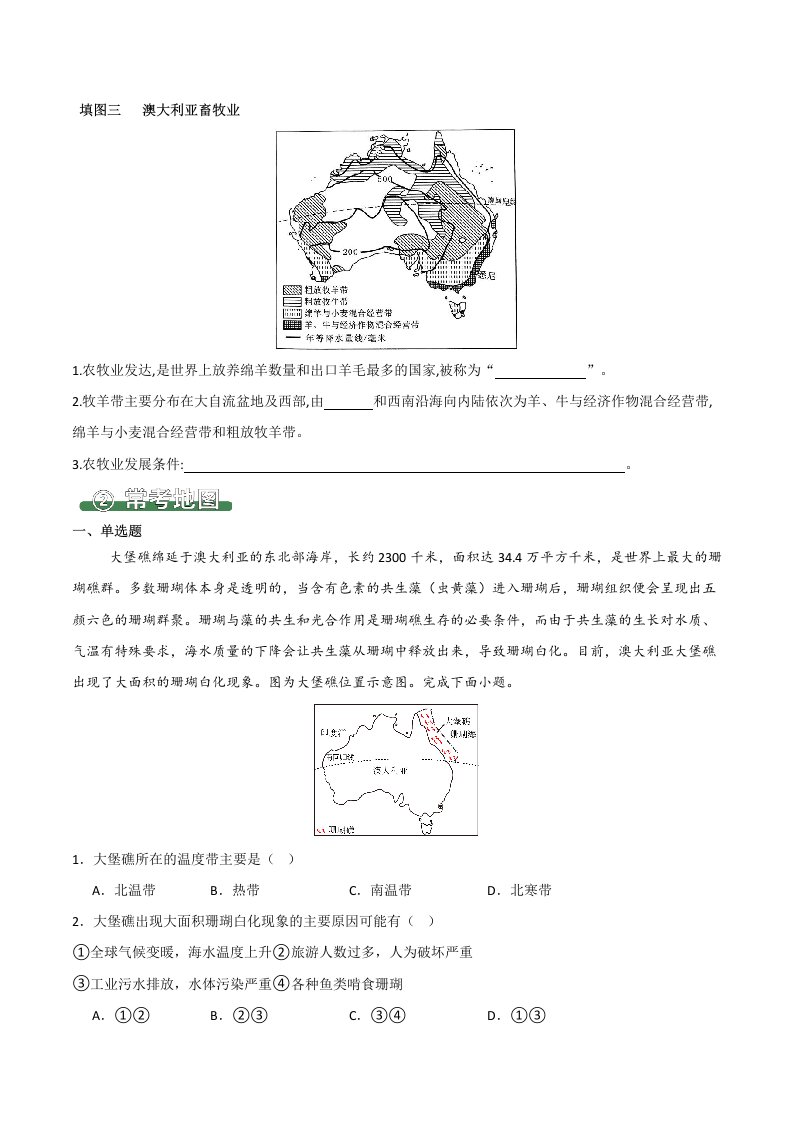 七下地理 9.4澳大利亚(填图速记)-(人教版)(含答案)QXDLRJ-0085