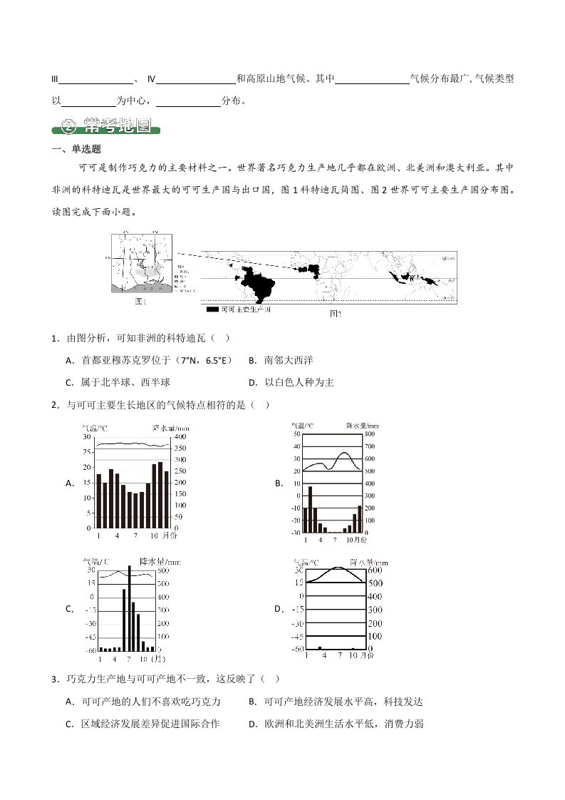 七下地理 9.3撒哈拉以南非洲(填图速记)-(人教版)(含答案)QXDLRJ-0083